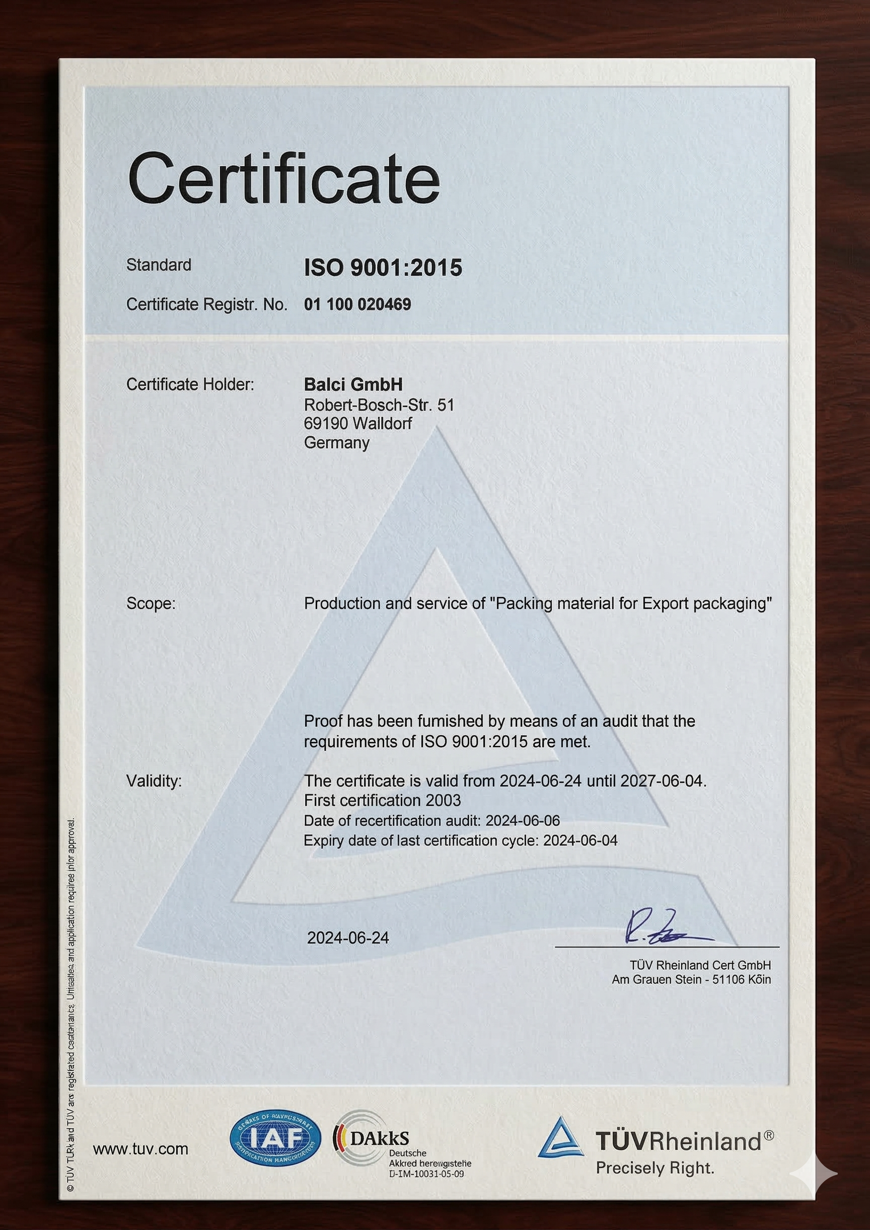 Die ISO 9001:2015-Zertifizierung ist mehr als nur ein Stück Papier; sie ist ein internationaler Nachweis für die Professionalität, Disziplin und Kundenorientierung eines Unternehmens. Die Partnerschaft mit der Balcı GmbH stellt sicher, dass Ihre Geschäftsprozesse mit maximaler Zuverlässigkeit und nach globalen Qualitätsstandards abgewickelt werden.